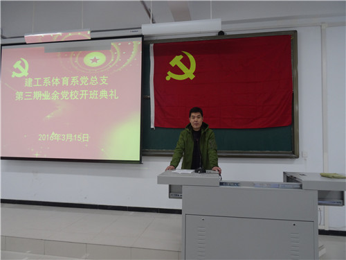 3月15日晚上七点,建工系体育系党总支第3期业余党校开班典礼在实训大楼610举行,建工系体育系党总支党总支书记韩炎涛出席本次开班典礼并作重要讲话。