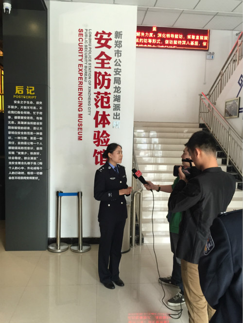 新郑市龙湖镇“安全防范体验馆”设立在龙湖镇双湖大道龙湖派出所旁,以高科技、互动体验为主,场馆包括序厅、交通展厅、消防展厅、治安展厅,公众可以体验虚拟驾驶、报警训练、虚拟翻书、消防游戏、模拟灭火、烟雾逃生等10余项互动内容。