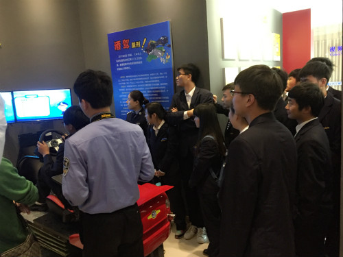 在现场解说民警的指导下,我系师生亲身体验了逃生通道区,用湿毛巾捂着口鼻,放低身体姿态循着安全出口指示标志的方向快速逃离火场。体验了虚拟酒后驾驶,该模拟机的方向盘、油门、离合器、刹车等部位的操作方法与真车基本一致,体验者可以根据自身驾车习惯选择不同的车型、不同的道路以及不同天气情况,进行模拟驾车行驶。
