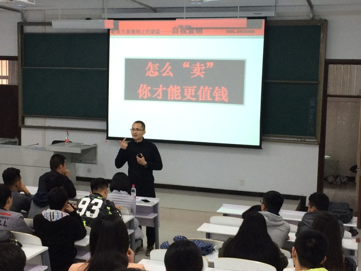讲座上,王华伟先生从车站卖报纸这一营销案例引出话题,激发了在场听众的浓厚兴趣,并在融洽的互动交流中与同学们一起领略自我营销的奇特魅力。对于“何自我营销?如何做好自我营销?”等问题, 先生结合了自己的工作经历和生活感悟为同学们一一作了解答。他认为,自我营销是一种由个人或者团体作为主体参加的活动,个人或者团体通过自我介绍履历表等形式手段,采用包括惊奇性、创意性、幽默性等策略,展示自我形象、人品以及情感,以达到个人或团体预期目的的活动。他还以华润置地的发展历程和管理模式为例启发同学们,要找准发展定位,做好职业生涯规划,构建自己的发展目标体系,在这基础上塑造良好的个人“品牌”形象,并加以自我促销。王华伟先生的生动讲解,让在场听众不禁陷入了思考,并赢得了大家的热烈掌声。