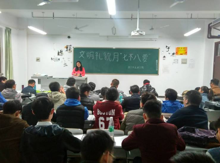 为响应学院号召,维护良好的教学秩序,配合学院的学风建设,建工系积极开展课堂文明教育活动。为使这项活动顺利完成,在行政秘书赵杨老师的领导和支持下,建工系各个班级自11月8日起,首先通过召开主题班会、网络新媒体等方式开展文明礼貌月“七不八要”的宣传活动。