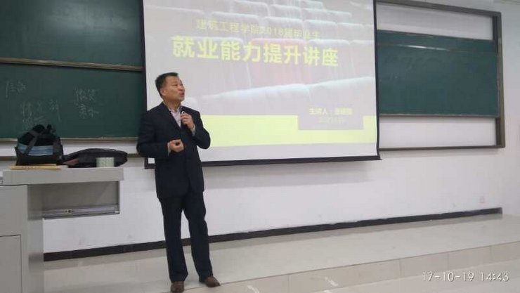2017年10月19日下午2点,suncitygroup太阳集团在实训楼608教室举办2018届毕业生就业能力提升讲座。出席本次讲座的嘉宾有suncitygroup太阳集团韩炎涛书记、suncitygroup太阳集团双创办公室负责人张建国老师以及毕业班部分辅导员。