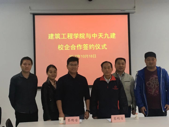 随后,公司与中天九建签约校企合作,签约仪式由公司副经理姜衍仓教授主持。双方代表相互致辞。姜衍仓教授代表学院对中天九建人力资源处杨海涛经理的到来表示热烈欢迎,他强调,中天九建是中国500强企业,本次签约可促使学院成为中天九建的人才培养基地并扩大公司的影响力。同时希望双方以后能进一步扩大合作,做到优势资源共享。中天九建人力资源处杨海涛经理表示,双方的合作是互利共赢的,充实员工课外学习的同时也为企业提供了订单式人才培养,希望今后公司能够成为学子的实战课堂,期待公司与公司的合作取得圆满成功。最后双方代表分别在协议书上签字,与会领导和老师起立与同学们共同见证了这一美好时刻。