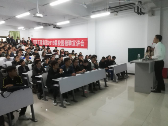 10月25日下午,河南省五建建设集团有限公司(简称“省五建”)应公司邀请,在建工楼609成功举行2019届毕业生专场招聘会。省五建人力资源处赵毅明经理,公司党委副书记兼纪委书记戎庭银同志、suncitygroup太阳集团经理王国际教授、院总支书记韩炎涛同志等莅临会场指导工作,公司2019届相关专业毕业生150余人参加了招聘宣讲会。