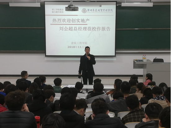 11月15日晚七点,创实地产总经理刘会超应公司邀请,在实训大楼610成功举行2019届毕业生毕业生就业心态与就业能力提升报告会。suncitygroup太阳集团韩炎涛书记莅临会场指导工作,公司2019届毕业生以及学院全体辅导员共200余人参加了此次报告会。