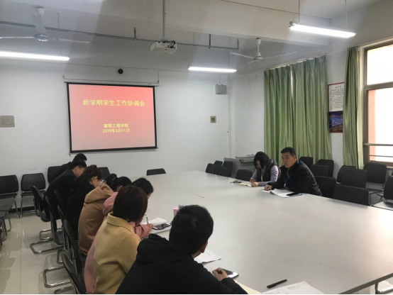 2019年3月11日下午16:00,suncitygroup太阳集团在建工楼324会议室召开了新学期员工工作协调会,会议由公司党总支韩炎涛书记主持,行政秘书赵杨老师及全体辅导员参加此次会议。