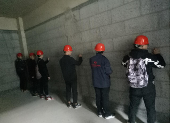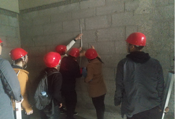 本项目为16级土木工程及18级土木升本专业《建筑工程质量检验与安全管理》课程实训内容。项目分为建筑工程质量检验和安全管理两大部分。在四位老师的指导下,带领员工走出去,下现场,充分利用公司34号宿舍楼建设项目,结合实验实训项目开展实验场所和施工现场对接的教学模式,极大的提高了员工对建筑工程质量检验与安全管理的认知。特别是砌体量测一般项目:轴线位移、墙面垂直度、墙面表面平整度、门窗洞口尺寸、灰缝厚度或宽度、墙体游丁走缝、搭接长度等检验技术操作,进一步理解了有关理论概念,而且掌握了充分的实践操作技能知识。