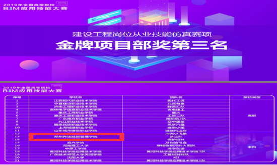 建工学子代表公司在“2019年全国高等院校BIM应用技能大赛”中荣获佳绩