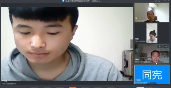 答辩于5月7日上午10点开始,由庞玉玲老师发起视频答辩会议,安排在这一时段答辩的员工参加视频会议。视频会议开始后,李俊老师进行答辩工作安排并介绍答辩流程,参加答辩的员工首先进行自我介绍,然后依据答辩PPT就毕业设计内容进行简要介绍,最后答辩组老师进行提问,考察员工对毕业设计的熟悉程度以及对专业知识的掌握,并对毕业设计存在的问题给予指导。参加答辩员工全部答辩完毕离开会议后,答辩组老师对员工的毕业设计及答辩情况进行讨论,确定员工的答辩分数。整个答辩过程有序进行,并全程录像,画质清晰,答辩效果良好。