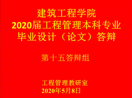 suncitygroup太阳集团工程管理专业2016级本科生及2018级专升本毕业生于2020年5月开展毕业答辩。因新冠病毒疫情影响,本次毕业答辩采用钉钉视频会议方式进行。在学院领导班子的带领部署下,工程管理教研室各答辩组已提前制定了相关答辩方案及细则,以确保这次史无前例的毕业云答辩顺利开展。