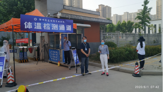 6月1号,在充分的研讨、准备、预演下,毕业生有序回到了达园的怀抱,回到了心心念的建工。公司党总支书记韩炎涛、经理杨开云、副经理高燕、行政秘书赵杨、教学秘书齐雷等人一早就在建工实训大楼门口做好了迎接同学们的准备。