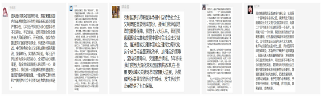 观看结束后,朱俊博同志认识到,认真学习贯彻全会精神,是一项重大政治任务。全体党员都应切实增强政治自觉和思想自觉,充分认识中国特色社会主义制度的本性特征和优越性。进一步增强“四个意识”、坚定“四个自信”、做到“两个维护”,坚定信心,保持定力,锐意进取,开拓创新,为实现中国梦而努力奋斗。