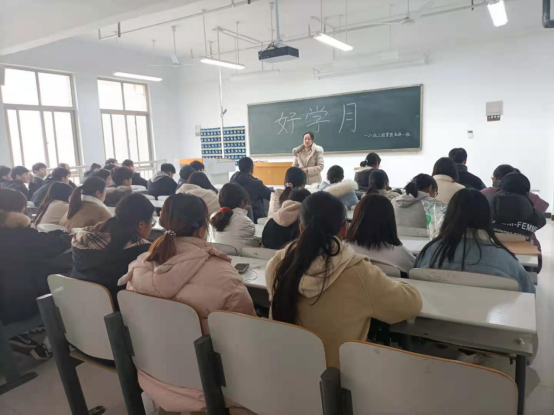 在班会上,首先由辅导员公布本次好学月活动的时间、评选先进条件及奖励等。然后,辅导员就本次好学月活动的主题:“遵守课堂纪律,营造优良学风;规范生活作息,养成好学习惯;倡导诚信考试,杜绝考试作弊。”对同学们进行了思想教育,结合各班的不同情况安排了具体的活动内容。要求同学们严肃上课纪律,规范自习活动,合理利用课余时间,养成早睡早起习惯,提高学习效率。并安排了“班级读书会”、“笔记评比大赛”等先进个人评比活动。最后,辅导员老师着重强调了考试纪律,加强了诚信教育,严肃考风考纪,新生班辅导员也组织员工完成了对《诚信考试告知承诺书》的学习并签名。