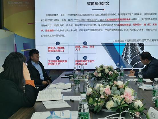 随后,郑州一建集团BIM中心王闹总监、广联达科技股份有限公司BIM高级产品专家陈家志先生、郑州工程技术学院教师代表、广联达科技股份有限公司数字教育产品经理李伟松先生分别做主题分享,就BIM+智能建造企业应用情况、智能建造专业建设现状、建设思路、课程体系和实验室情况与参会人员开展深入交流。