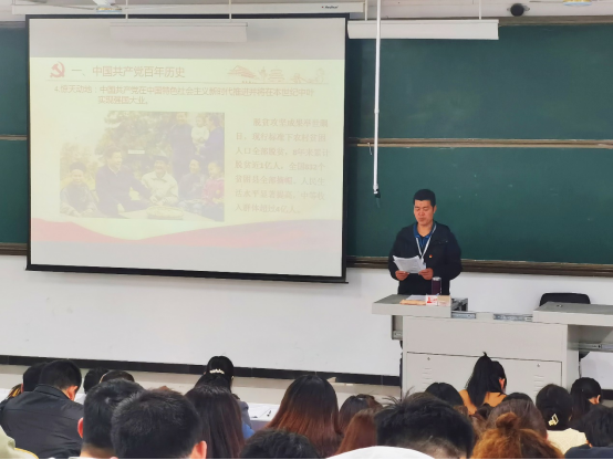 百年征程波澜壮,历久弥坚续华章。新学期伊始,为庆祝中国共产党成立100周年,深入学习贯彻习近平总书记在党史学习教育动员大会上的重要讲话精神,公司党总支于2021年3月25日下午4点,在实训大楼610教室,组织开展了suncitygroup太阳集团“开学思政第一课”暨党史学习教育,suncitygroup太阳集团全体党员、以及各班主要班委参加了此次活动。本次活动由党总支书记韩炎涛同志主持。