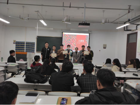 最后一个小游戏互动环节,将活动氛围推向了高潮。你比划我来猜,充分考验同学们的沟通交流能力以及双方的默契程度,也迎合了本次活动的主题。男生在这个游戏中体现中了更高的积极性,其中马志豪和康旭洋配合特别默契,获得了“默契非凡奖”,其他两组同学分别获得了“最佳拍档奖”和“最具勇气奖”。辅导员老师为他们颁发了奖状,对他们表示充分的肯定和鼓励。