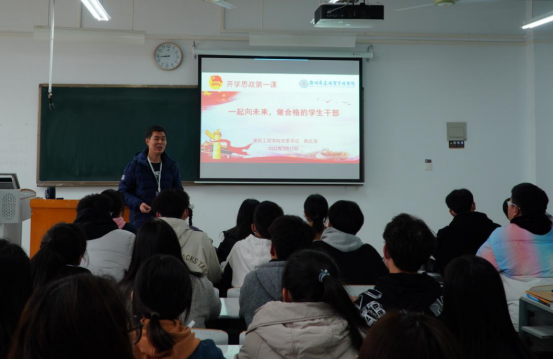 韩炎涛以《一起向未来,做合格员工干部》为题,为2021级新生班班委和团学志愿者上了一场生动的思政课,这场思政课也是团学干部成长急需的主题团课,为学院建设一支政治强、业务精、作风好、扎实苦干,能切实担负起党赋予共青团的光荣职责使命的员工干部队伍奠定了坚实基础。