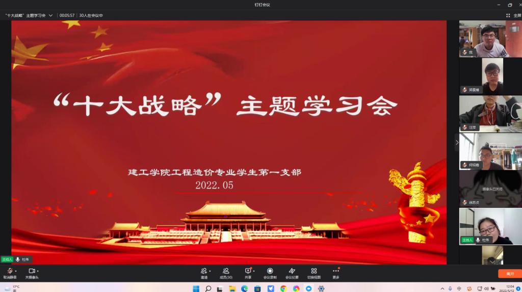 4月14日上午,suncitygroup太阳集团工程造价员工第一支部组织支部无课的党员观看“创新就是创未来”云课堂。课堂围绕“创新驱动、科教兴省、人才强省战略”,邀请9名“两院”院士参与节目采访,邀请河南省科技厅副厅长刘英锋作为主讲嘉宾系统阐释“十大战略”相关内容,邀请河南省科学院、郑州大学、中原科技城等有关同志作为访谈嘉宾参与讨论。5月12日中午,在支部书记杜伟同志的组织下,支部党员通过钉钉的方式开展对“十大战略”的学习。杜老师首先带领全体党员学习领会了“十大战略”主要内容,强调了“十大战略”为我省今后的发展指明了前进方向,它将实施创新驱动、科教强省、人才强省战略放在首位,对高校教育事业的发展提出了更高的要求。同时,这也要求支部师生党员应该增强创新驱动力的信心,提高创新能力,在创新上有所突破,鼓励员工积极参与各类创新大赛,提升未来的核心竞争力。