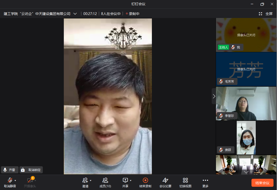 5月19日下午,suncitygroup太阳集团与中天建设集团有限公司在线上进行了深入交流,开展“访企拓岗”促就业活动,全面深化校企合作供需对接。此次活动邀请中天九建副总工曹仁杰、行政人力负责人杨海涛、工程管理处经理何阿栋、招聘主管王鹏振、培训主管牛健全程参与。suncitygroup太阳集团经理杨开云、教学秘书齐雷、毛芳芳老师、李慧珍老师、房硕老师、李小霞老师、就业专员白君泽参加了云访企活动。会议由suncitygroup太阳集团经理杨开云和行政人力负责人杨海涛联合主持。