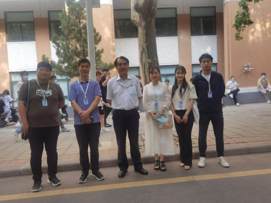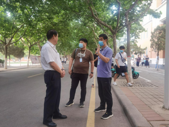 6月9日,公司党委书记韩炎涛、经理杨开云,行政秘书赵杨,教学秘书齐雷和22届专科毕业班辅导员们一早就来到考场等候区,慰问即将赶赴考场的同学们,不厌其烦地提醒同学们考试证件、物品准备的情况,叮嘱同学们沉着应战、诚信答题,为同学们加油鼓劲。