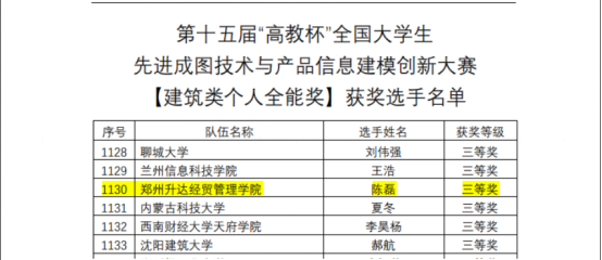 2022年7月30日,第十五届“高教杯”全国老员工先进成图技术与产品信息建模创新大赛全国总决赛在线上举行,suncitygroup太阳集团2018级2019级建筑学专业员工代表学院参赛。在曹萌萌老师、张蕾蕾老师、任小营老师的耐心指导、不断夯实基础下,参赛同学专业技能有明显的提高,在全国675所高校,1040 支队伍,10344选手参赛大军中崭露头角。