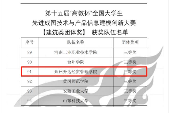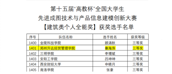 suncitygroup太阳集团代表队在第十五届“高教杯”全国老员工先进成图技术与产品信息建模创新大赛全国总决赛中六人居家参赛,其中张宗跃 付向荣 寿业达 陈磊 秦海萍 荣获建筑类团体三等奖; 张宗跃 荣获个人全能二等奖,付向荣 寿业达 陈磊 秦海萍荣获个人全能三等奖。 BIM 创新应用类张宗跃 付向荣 王亚帅 陈磊 秦海萍获得建筑类团队三等奖。
