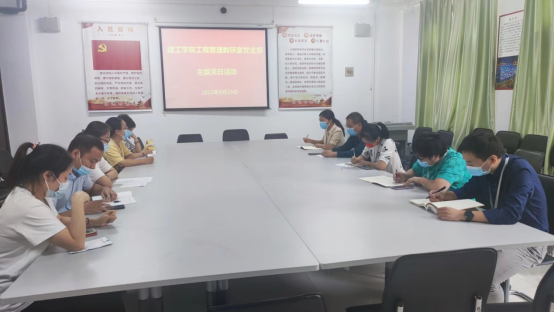 2022年9月29日,工程管理教研室党支部在建工楼324,组织了“十大战略”主题党日活动,观看“十大战略”第五集,教育支部教师以立德树人为根本任务,聚精会神、攻坚克难,牢记为党育人、为国育才的使命。