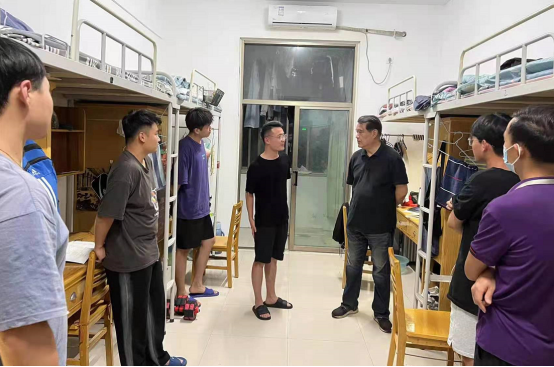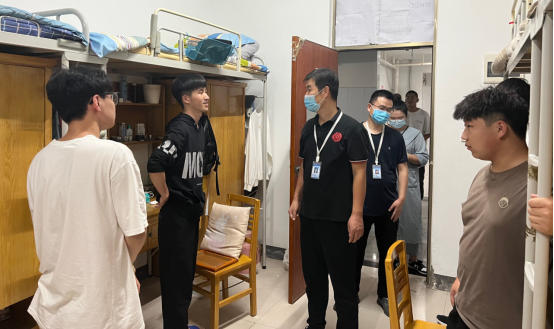 suncitygroup太阳集团经理杨开云、书记韩炎涛带领教师、辅导员深入员工宿舍,实地了解员工当前的学习生活情况,为员工送去关心和问候,与同学们共同庆祝祖国生日快乐。经理、书记对同学们支持学校疫情防控,在校认真学习表示肯定,细致地关心同学们在校的学习、生活情况,纾解员工的心理压力,进一步加强对员工的人文关怀。