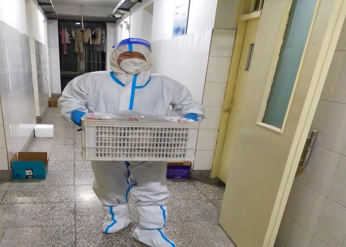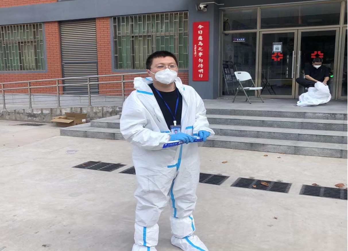 李俊,每次疫情来临,他总能听从党的召唤,发挥党员先锋模范作用,用自己的实际行动筑起一道生命防线,诠释一名共产党员的担当与责任。今年4月份,疫情防控期间李老师就坚守在学校的战线上,一直到疫情得到控制才返回家中。这次自公司实施封闭管理开始,李俊老师又一次舍小家为大家,虽然家中女儿才2岁,正需要人照顾,但是为了学校疫情防控的需要,李老师义无反顾留校,并在此次疫情中承担起了10号楼的送餐任务。