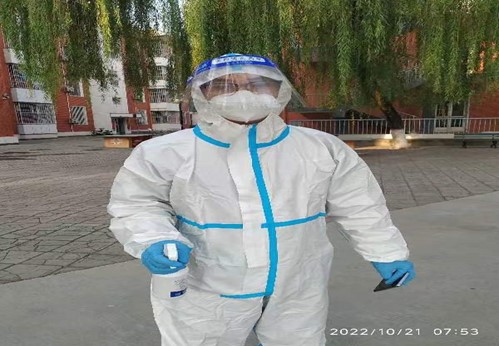 王洋洋,她作为双职工家庭,和爱人在疫情面前均选择冲锋向前,在疫情出现的第一时间,果断选择给刚刚满一岁的孩子断奶,投入到学校疫情防控的第一线。作为30号员工宿舍楼的负责老师,王洋洋老师每天积极协调好餐厅供餐工作和核酸工作,从早上6点多忙碌到晚上10点多,并且在送餐之余,做好员工生活物资配送工作,保证员工生活需要。当员工遇到问题和困难时,她也会第一时间到位,给员工最及时的关心、关爱,员工也在老师的影响和感召下,增添了必胜的信心。