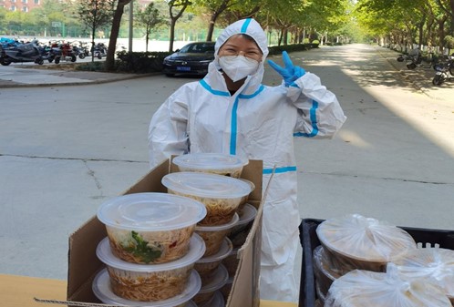 范桦,自10月18日学校开始封控,她就响应学校号召,负责30号楼的配餐任务,保证员工的一日三餐,她第一次觉得疫情离自己这么近,并没有感到害怕和恐慌,而是迅速安抚好员工的情绪,对员工进行心理疏导,并且利用休息时间为员工送去必需的生活用品,成为员工的坚强后盾。她说:“员工们都比较配合、理解我们的工作,也都心怀感恩,尽管有忙碌后的疲惫,也觉得非常值得,但是疫情就是命令,防控就是责任,希望我们师生携手抗疫,共同努力,期待着疫情的结束。”