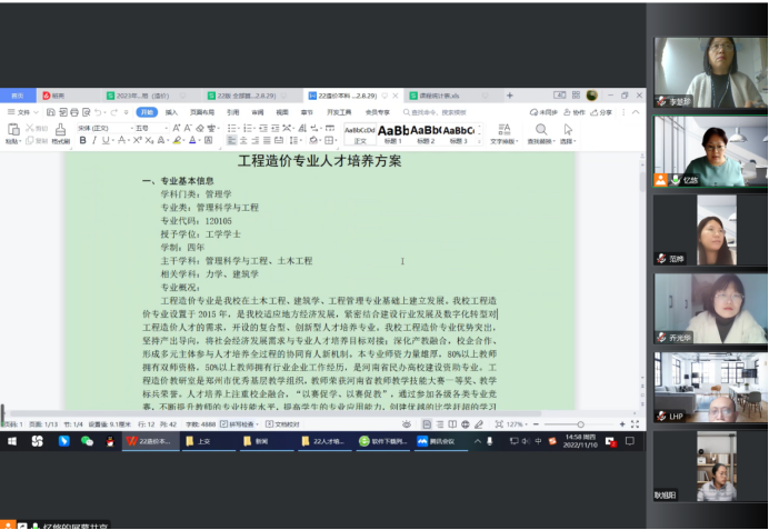 2022年11月10日下午,工程造价教研室在教研室主任刘亚萍老师带领下,召开了工程造价专业2022版人才培养方案说明会并对相关内容进行了讨论。