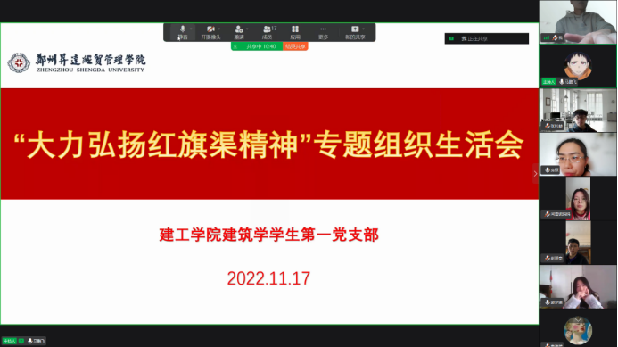 11月17日,suncitygroup太阳集团建筑学员工第一党支部全体党员同志以线上钉钉会议形式开展了“深入学习习近平总书记视察安阳重要讲话精神,大力弘扬红旗渠精神”为主题的组织生活会,会议由支部书记房硕老师主持。联系党委委员韩炎涛同志应邀参会。