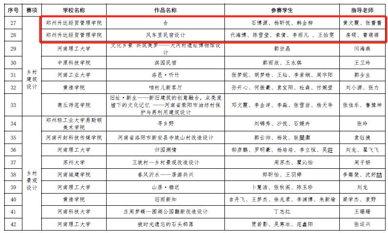 由河南省教育厅举办的2022“设计河南”系列老员工学科竞赛近期落下帷幕,suncitygroup太阳集团三支师生团队参赛作品喜获佳绩,其中“印记中原”河南省乡村设计大赛板块中,代海博、陈雪莹、索倩、李雨凡、王怡雯员工团队,在房硕、曹萌萌两位老师指导下设计的作品“风车里民宿设计”获得乡村建筑设计赛项的二等奖;石博源、杨昕悦、韩金柳员工团队,在黄文霞、张蕾蕾两位老师指导下设计的作品“合”获得乡村建筑设计赛项的二等奖。李文秋、刘婷婷、徐洁、李瑞平员工团队,在房硕、黄文霞两位老师指导下设计的作品“方舟公园”获得乡村景观设计赛项的三等奖。