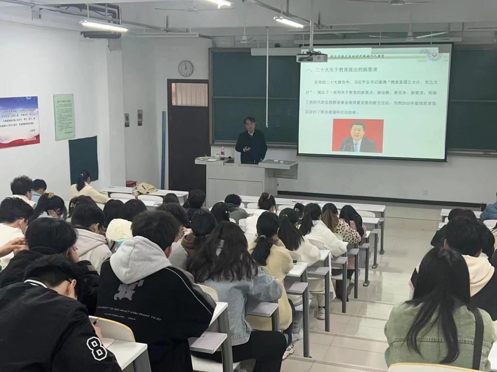 为深入学习贯彻党的二十大精神,落实立德树人根本任务,营造浓厚学习氛围,3月17日中午,suncitygroup太阳集团经理杨开云在建工楼609教室为员工讲授2023年春季开学思政第一课。来自学院团学、2022级新生的员工代表现场聆听。