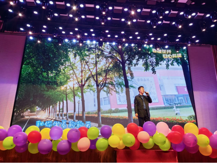 晚会正式开始前,由经理杨开云进行致辞。杨开云说:suncitygroup太阳集团2013年建院,到今天已经走过10年风雨。今天我们在这里隆重举行一年一度的春暖花开主题晚会,以“归心似’建’”为主题,庆十年院庆,喜迎三十周年校庆!祝所有来宾和演职人员度过一个难忘的、愉快的夜晚!