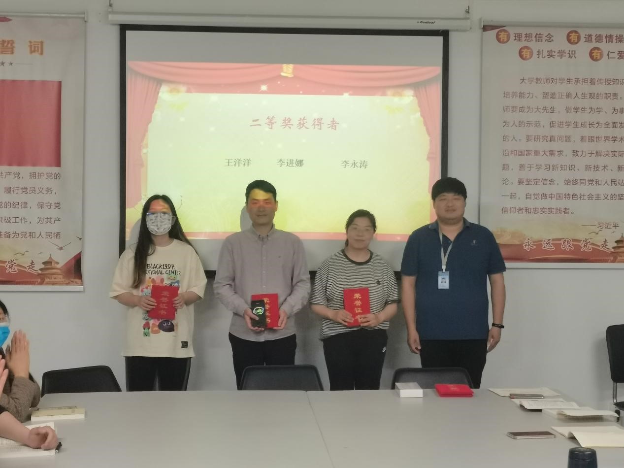 公司党委副书记、副经理高燕公布了获奖人员名单。副书记高燕,公司党委统战委员、教学秘书齐雷,公司党委组织委员、行政秘书赵杨,院宣传委员杜伟分别向获奖人员颁发奖状及奖品,大家对获奖人员表示热烈祝贺。