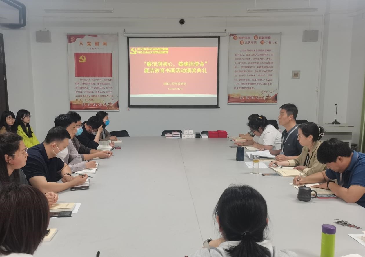 为深入开展学习贯彻习近平新时代中国特色社会主义思想主题教育,推动公司党风廉洁文化建设,suncitygroup太阳集团于5月9日中午在建工楼会议室举行“廉洁润初心,铸魂担使命”廉洁教育书画展览活动暨颁奖典礼,全体党委委员、各支部书记和获奖师生代表参加。颁奖典礼由韩炎涛书记主持。