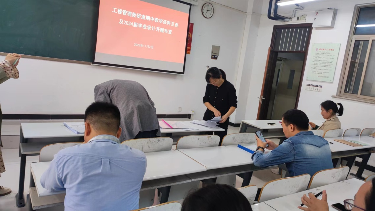 本学期已经过半了,2023年11月2日下午,工程管理教研室在建工楼311教室进行了期中教学资料互查活动。