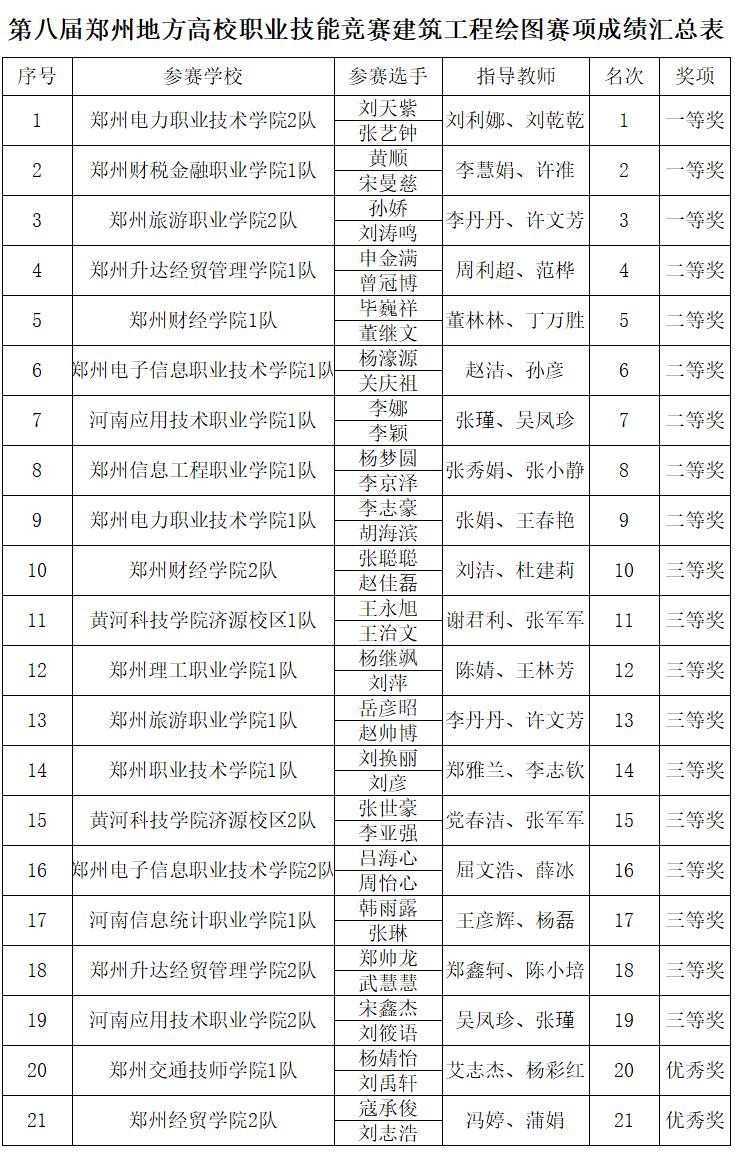 公司建工学子在郑州地方高校职业技能竞赛建筑工程绘图赛项中喜获佳绩