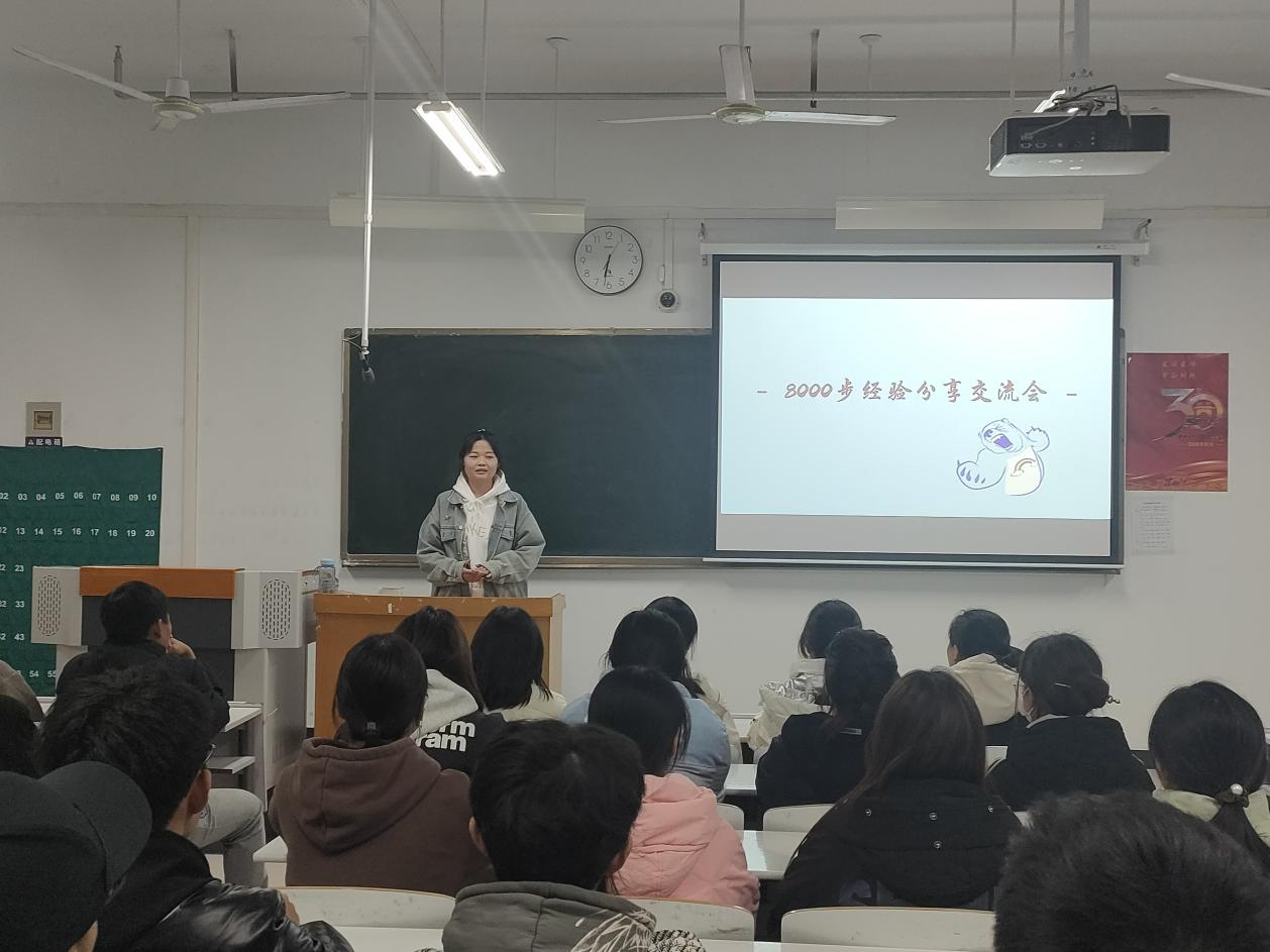 经验分享会上,辅导员老师们结合当前“脆皮老员工”等热门话题,向同学们讲解了健康运动的重要性,并指出强身健体是一个循序渐进的过程,鼓励同学们认真落实每日8000步运动计划,重在迈出“第一步”,成在“持之以恒”,要将锻炼身体提高自我融入日常学习与生活之中。各班的运动达人们积极分享自己的运动计划和运动经验,引导同学们“走下网络,走出宿舍,走向操场”,积极参加每日8000步活动,加强绿色出行意识,提高自身身体素质,形成良好的运动习惯,营造校园阳光运动文化的氛围。