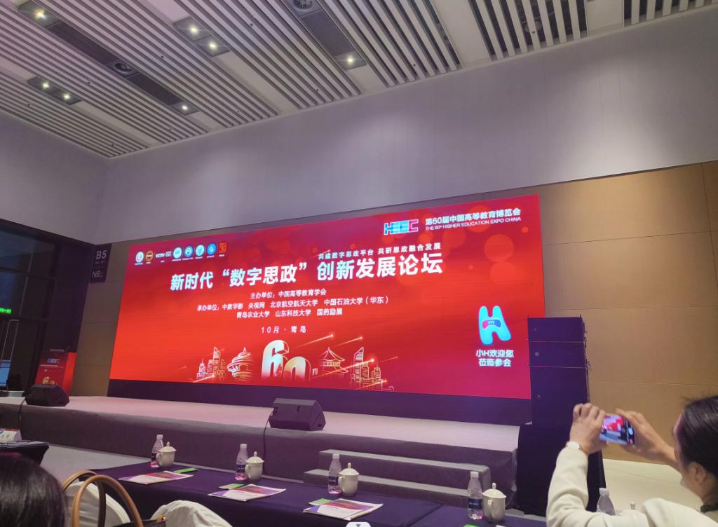 此外,还有多个高端论坛可以参观学习,魏春龙、牧涛两位教师在此培训期间参加了新时代“数字思政”创新发展论坛、高校实验室科学规划与设计论坛、全国信息技术应用创新行业产教融合体成立大会以及产教融合人才培养主论坛。在这为期3天的学习中,两位老师不停地穿梭于各个展览馆与论坛场馆之间,感觉有学不完的内容,多个专家、行业巨擘发表演讲,给人耳目一新的感觉。由于时间有限,虽然举办的展会很多、论坛很多,但是却没有更多的时间去参观学习了。