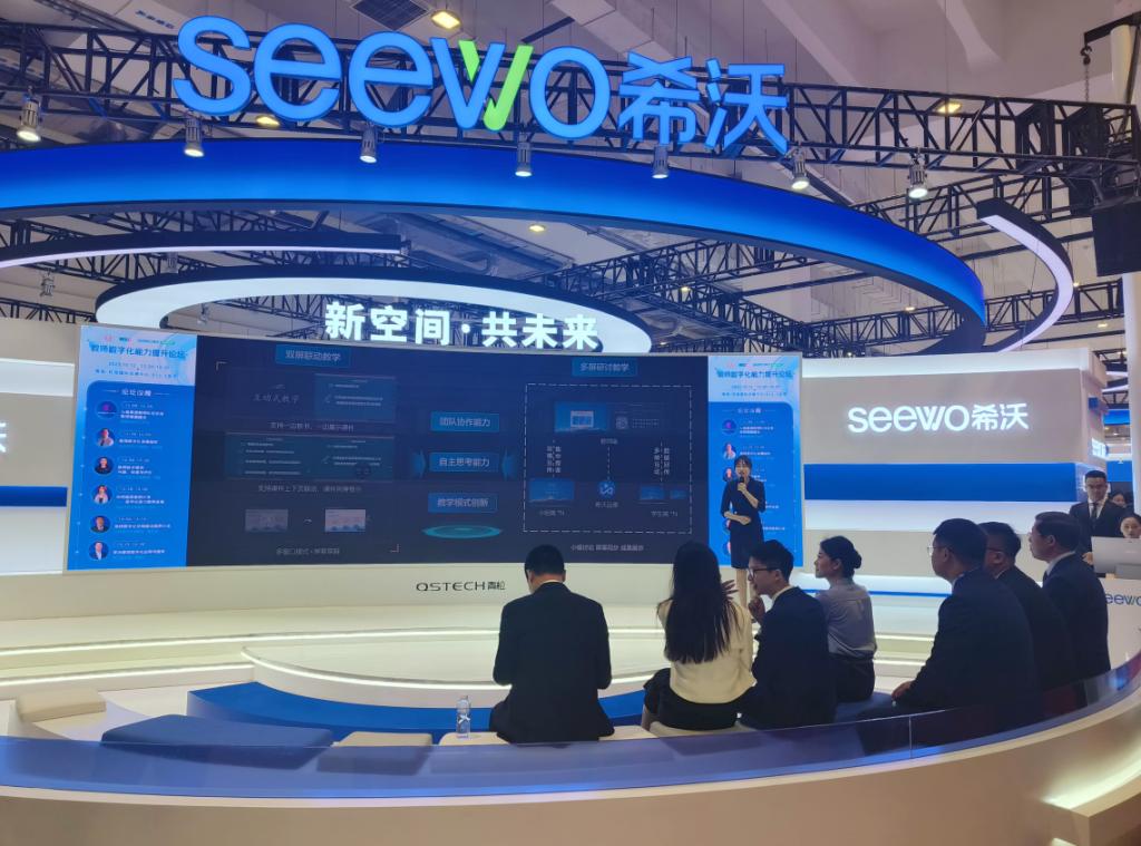 在为期3天的培训中,魏春龙、牧涛两位教师参观了多个场馆,场馆中不仅有希沃、博汇、青鹿等国内多个知名厂商展出的各种最前沿的教学设备、教学理念,同时也有国内各个高校的老师进行沟通交流,在不少展台都提供了良好的平台供各方交流学习。