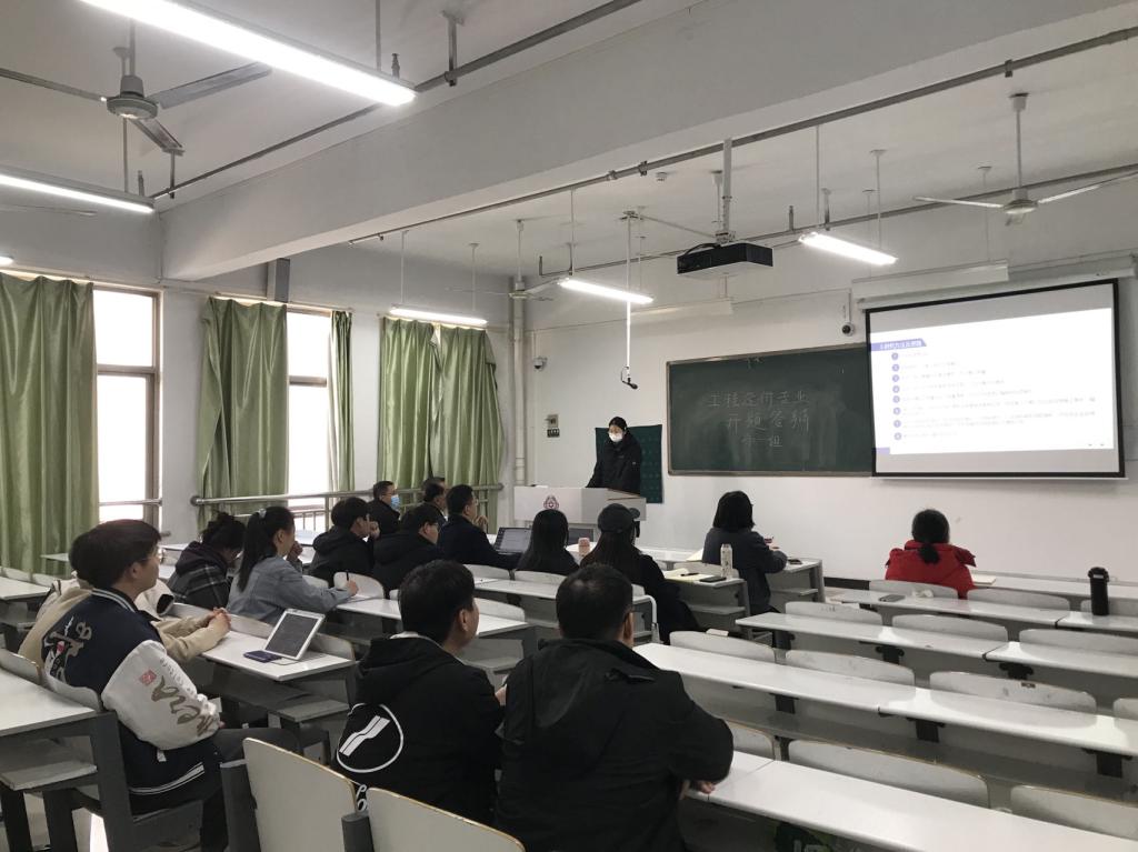 答辩会分两个环节,5分钟个人陈述和5分钟提问答辩环节。会前,每位同学精心准备,制作开题报告答辩PPT。会上,答辩同学根据制作好的PPT,讲解自己毕业设计的选题依据与意义、研究思路与内容、预期成果与安排等内容。答辩老师对员工的开题报告进行点评,指出问题所在,提出修改意见,并填写开题报告答辩评审表。