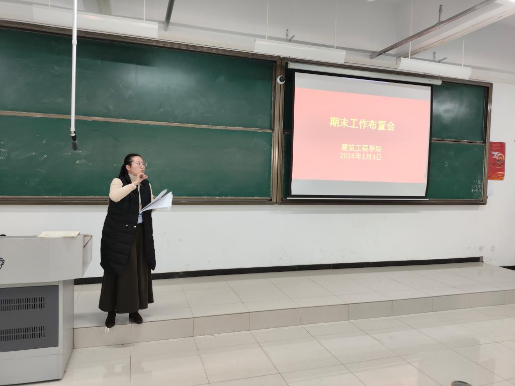 韩炎涛首先传达了学校主管会议内容和工作要求,并结合学院工作实际做了工作安排。他指出,在学校领导的支持关心下,在全体教工的共同努力下,学院2023年坚持和加强党的全面领导,开展学习贯彻习近平新时代中国特色社会主义思想主题教育,将党建与业务工作深度融合,促进公司产品质量全面提升,取得了一系列丰硕成果。他强调,临近期末,根据学校工作部署安排,为做好期末工作圆满收官,要重点做好以下工作:一要做好期末考试工作,加强监考教师培训,严格落实监考相关规定,要做好员工考风考纪教育,教育员工诚信考试;二要做好学院安全稳定和安全教育工作,要严格落实安全生产责任制,做好期末安全卫生检查,排查安全隐患,要召开员工安全教育主题班会,提升安全意识,强化安全责任;三要做好期末总结和下学期工作安排,守正创新,促进学院各项工作不断提升。