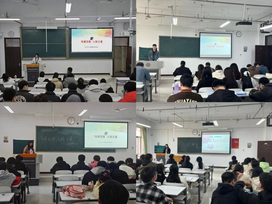 心理健康教育主题班会以“扳手腕”的热身活动引入主题—《沟通无限,人际之星》,从人际沟通的定义、人际沟通的技巧、化解人际矛盾的方法等方面展开详细讲解,并通过开展小调查、学会倾听、友谊健身操等活动加强同学们之间的互动交流。心理健康教育主题班会的开展,让同学们理解了人际沟通的重要性,掌握了人际沟通的基本原则和技巧,学会积极的与人交流、沟通,拥有良好的人际关系。