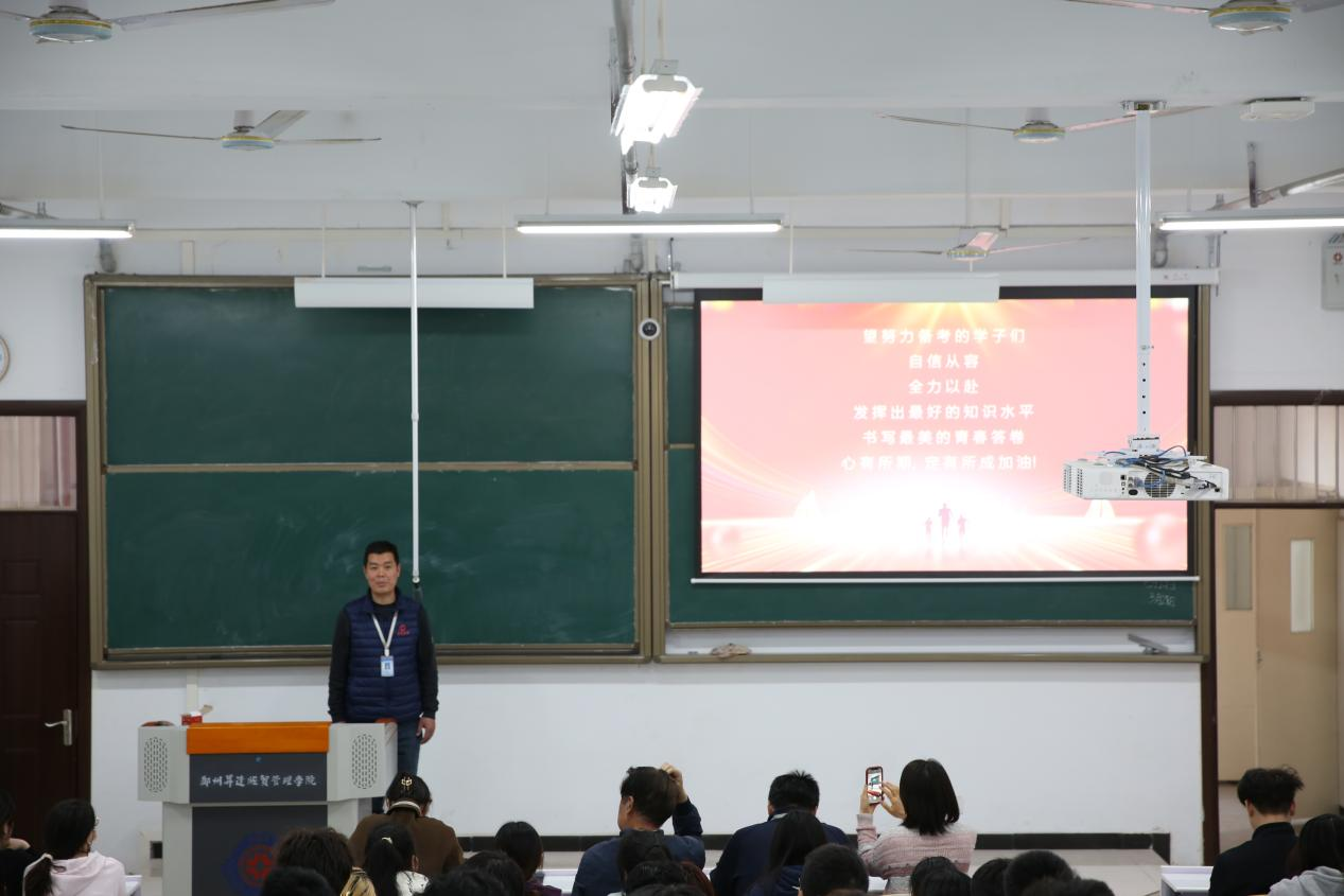 韩炎涛就专升本考试规则、考试要求、考试安全和注意事项做了安排。他鼓励员工们保持积极的心态、健康的状态、合理的安排全力以赴迎接考试,努力取得理想的成绩,在前进的道路上迈出坚实的一步。他向同学们强调了诚信考试的重要性,要求大家端正考试态度,严守考风考纪,务必做到认真备考,诚信应考,共建诚信考场。