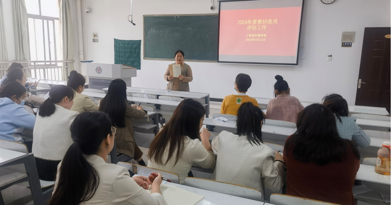 为进一步推进公司产品质量,全面推进人才培养质量,工程造价教研室于4月11日14:30召开专题会议,会议由工程造价教研室刘亚萍主任主持,全体教师参加。会议内容主要分为两部分:(1)2024年度教材选用评估工作安排;(2)毕业设计答辩部署。